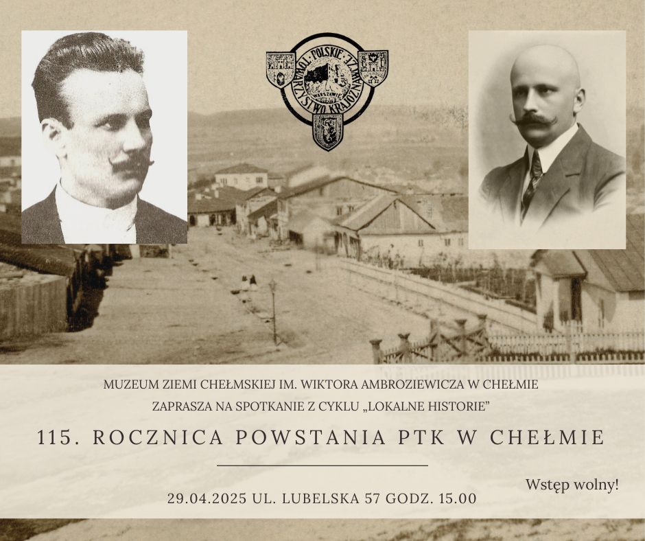W najbliższy wtorek, 29 kwietnia o godzinie 15:00 odbędzie się kolejne spotkanie w ramach cyklu „Lokalne historie”. Tym razem wykład poświęcony będzie 115. rocznicy powstania Polskiego Towarzystwa Krajoznawczego w Chełmie. Spotkanie odbędzie się w budynku Muzeum przy ul. Lubelskiej 57.