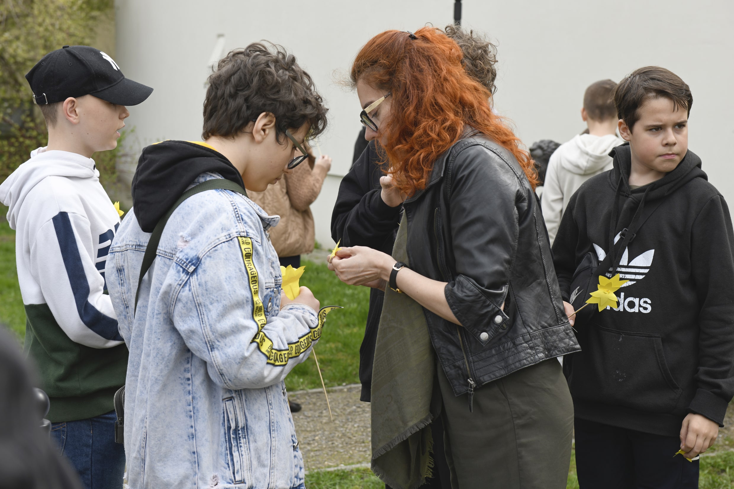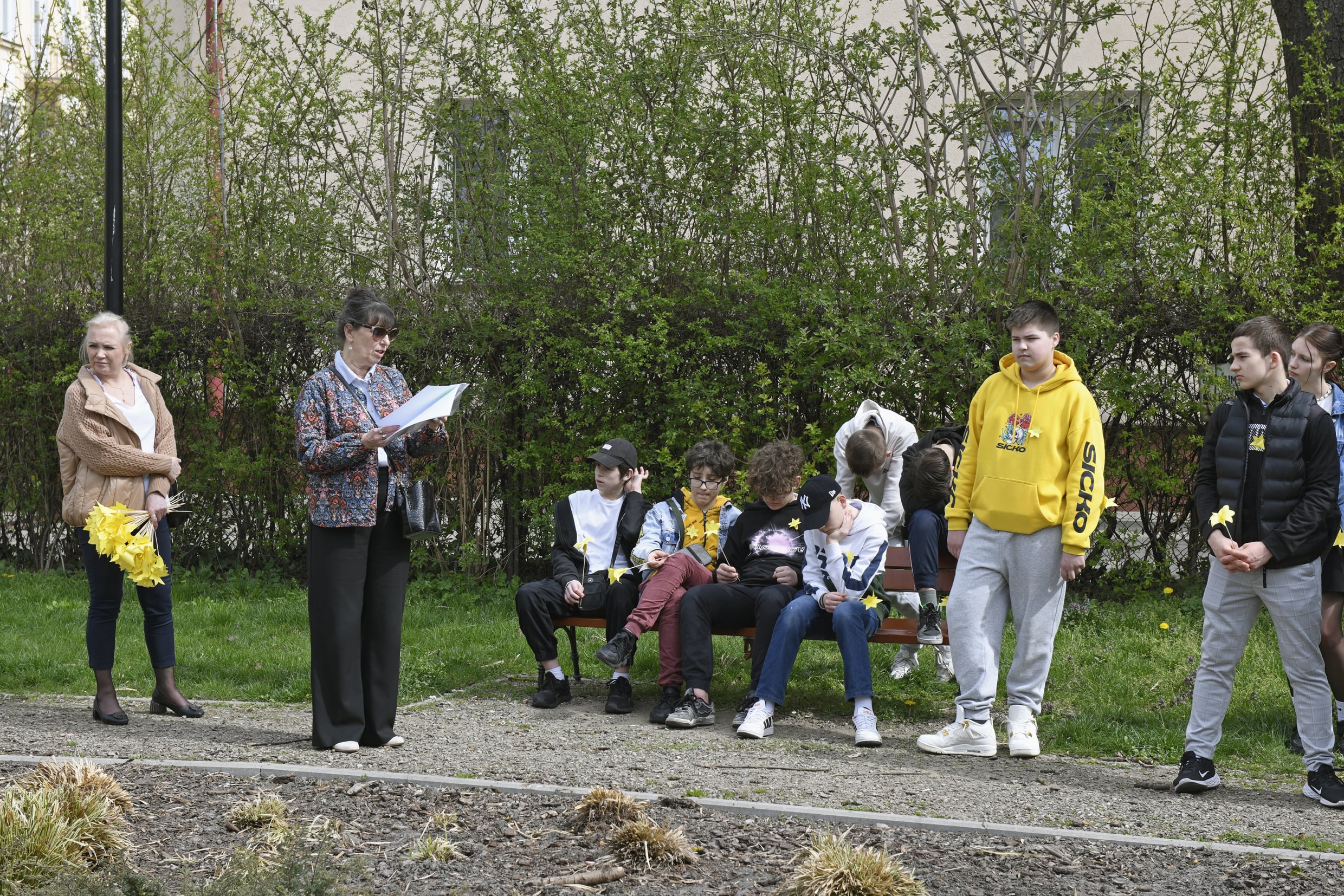 Dziś na skwerze Zygielbojma odbyło się wyjątkowe spotkanie w ramach akcji „Żonkile”. Uczennice i uczniowie z klas 7c i 8c Szkoły Podstawowej nr 8 w Chełmie, pod opieką pani Marzeny Boćwińskiej i pani Agaty Wojtasiuk, mieli okazję wysłuchać poruszających fragmentów „Pieśni o zamordowanym żydowskim narodzie” Icchaka Kacenelsona oraz listu pożegnalnego Szmula Zygielbojma. Wraz z młodzieżą na skwerze pojawiły się papierowe żółte żonkile, które symbolizują pamięć o ofiarach Holokaustu. To była ważna lekcja historii, empatii i wartości, które powinniśmy pielęgnować.