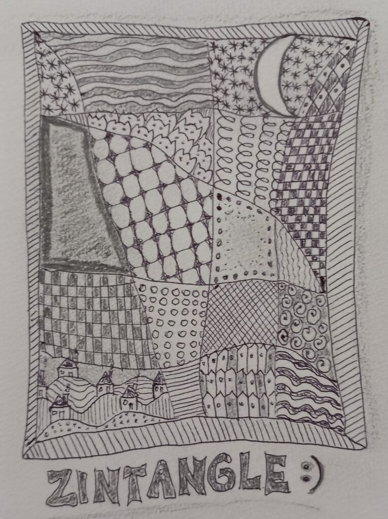 Inną techniką, jaką poznasz podczas warsztatów są Zentangle®. To medytacyjna metoda rysowania, która polega na tworzeniu skomplikowanych wzorów (zwanych tangles) z prostych, powtarzalnych kształtów. Jest formą sztuki uważności (mindfulness art) – bez stresu, bez oceniania, bez potrzeby planowania. Cechą charakterystyczną Zentangle jest to, że każdy – nawet bez doświadczenia artystycznego – może stworzyć efektowny, satysfakcjonujący rysunek. Czym jest metoda Zentangle®?