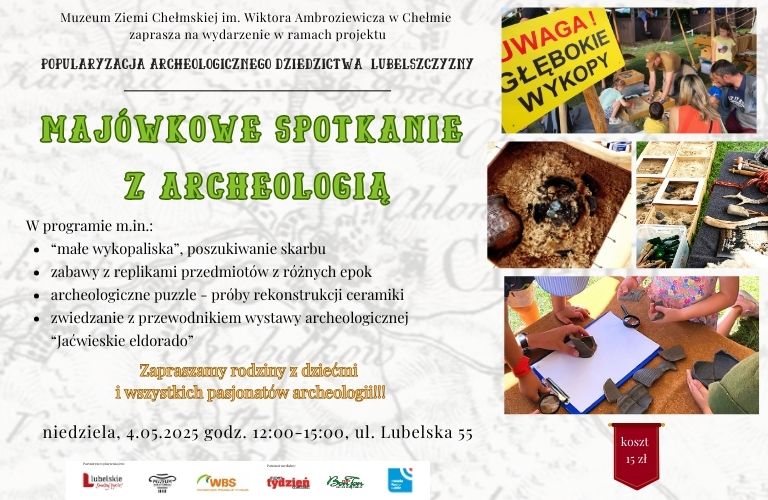 Nasza wiosenna przygoda z archeologią niestety dobiega końca. Od marca wystawie Jaćwieskie eldorado towarzyszyły warsztaty, prelekcje, wykłady. Ostatnim punktem programu Popularyzacja Archeologicznego Dziedzictwa Lubelszczyzny jest „piknik” archeologiczny, na który zapraszamy w niedzielę, 4 maja, w godzinach 12 – 15. W programie m.in. „małe wykopaliska” i poszukiwanie skarbu pod okiem archeologów, zabawy replikami eksponatów z przeszłości, próby rekonstrukcji ceramiki, a także zwiedzanie z przewodnikiem wystawy archeologicznej „Jaćwieskie eldorado” – wystawa czynna jest TYLKO do 4 maja!