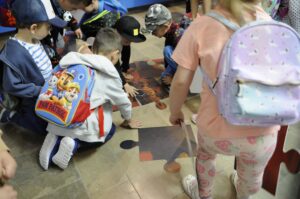 W środę gościliśmy cudowną grupę przedszkolaków z Leśniowic, która na wystawie historycznej i przyrodniczej próbowała swoich sił w rozwiązywaniu zagadek i łamigłówek. Było to pierwsze spotkanie z cyklu Muzealny Detektyw, mające na celu rozwijanie umiejętności analitycznego myślenia oraz kreatywności i uważności. Po zapoznaniu się z wystawami, obejrzeniu dokumentacji fotograficznej oraz wysłuchaniu legend chełmskich, dzieci miały czas na zabawę i rozwiązywanie zagadek. Na koniec otrzymały Dyplomy Muzealnego Detektywa. Dla wielu dzieci jest to często pierwszy kontakt z muzeum, dlatego tak ważne jest, by kojarzył się pozytywnie, z zabawą i przyjemnością, a nie nudą 🙂