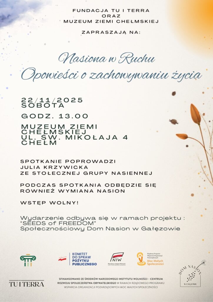 Wydarzenie odbywa się w ramach projektu “SEEDS of FREEDOM” – Społecznościowy Dom Nasion w Gałęzowie w ramach Programu Moc Małych Społeczności..