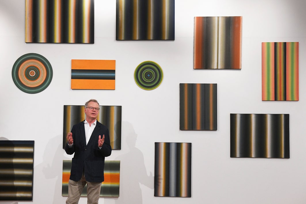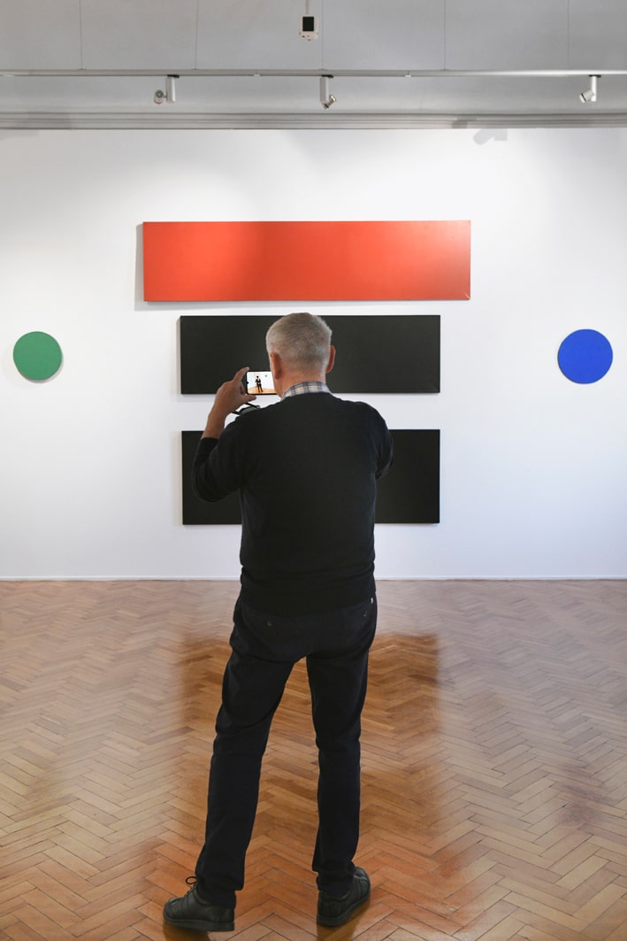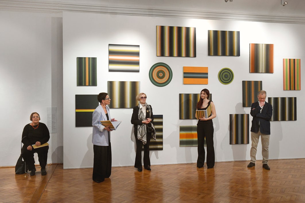 Tomasz Żołnierkiewicz (1935–2018) is a unique figure in the history of Polish painting in the second half of the 20th century. Although he taught for many years at the Warsaw Academy of Fine Arts (where he became Stefan Gierowski’s assistant in 1962), he remained on the fringes of the art world. In many ways, he lived the life of an outsider. Known as a poster artist, he lost all his prior pictorial output in a flood in the late 1980s. From then on, he set out to build or reconstitute his work across a wide variety of styles: ray paintings, dot paintings, Lettrist paintings, trompe-l’oeil, and other works make up an astonishing ensemble that seems to aim not at asserting the individuality of the artist, but simply at exploring the possibilities of painting. Żołnierkiewicz assembled these works in various configurations in his studio, which he was reluctant to let anyone visit. These resolutely anti-authoritarian works are paintings waiting to be performed. With them, the beholder plays as important a role as the artist.