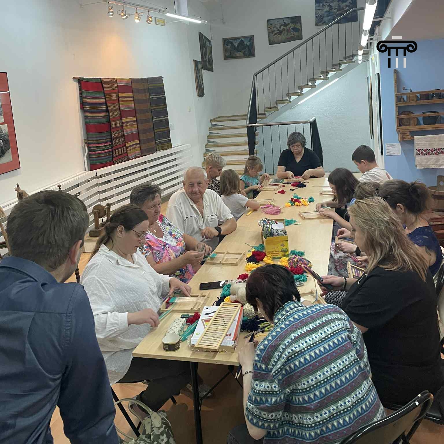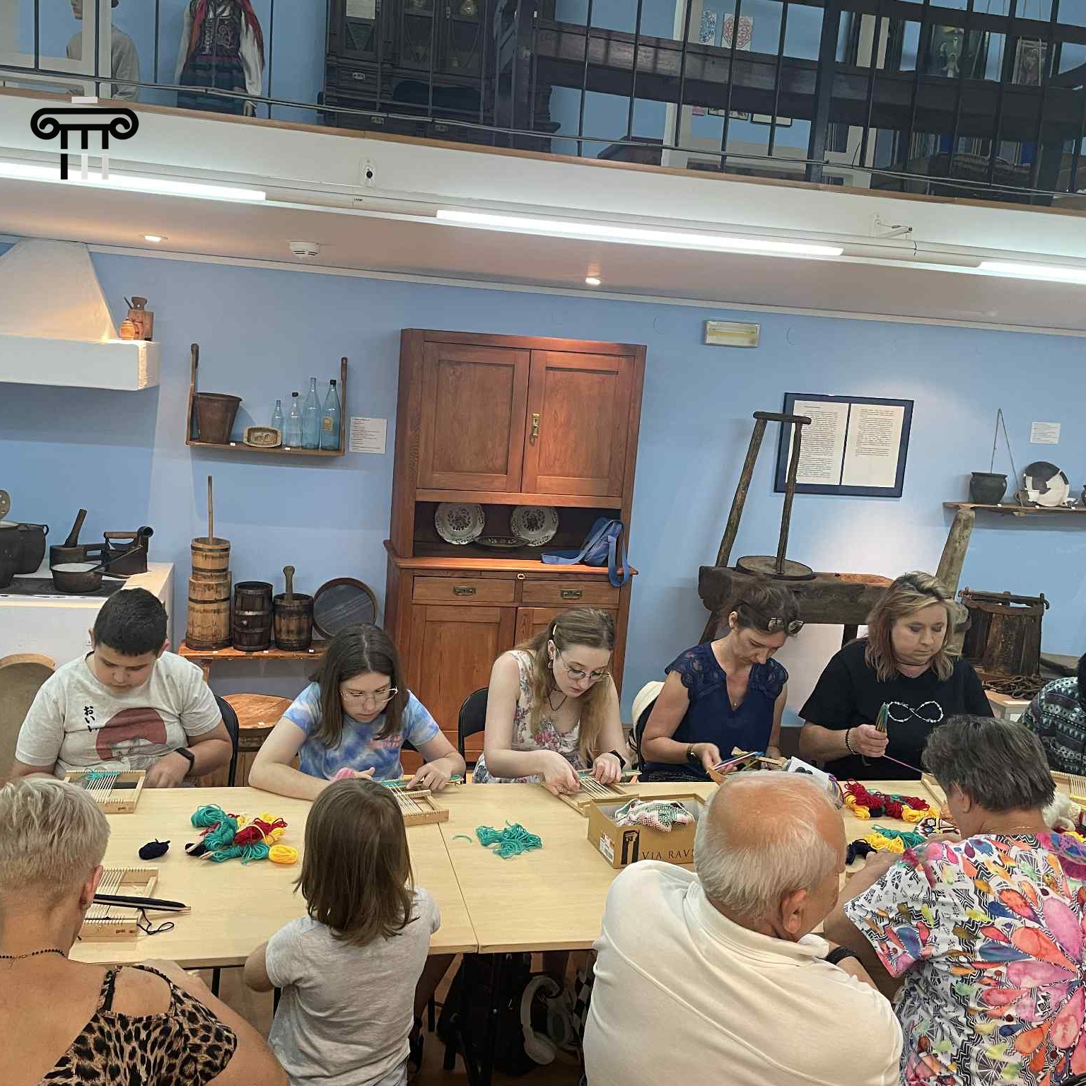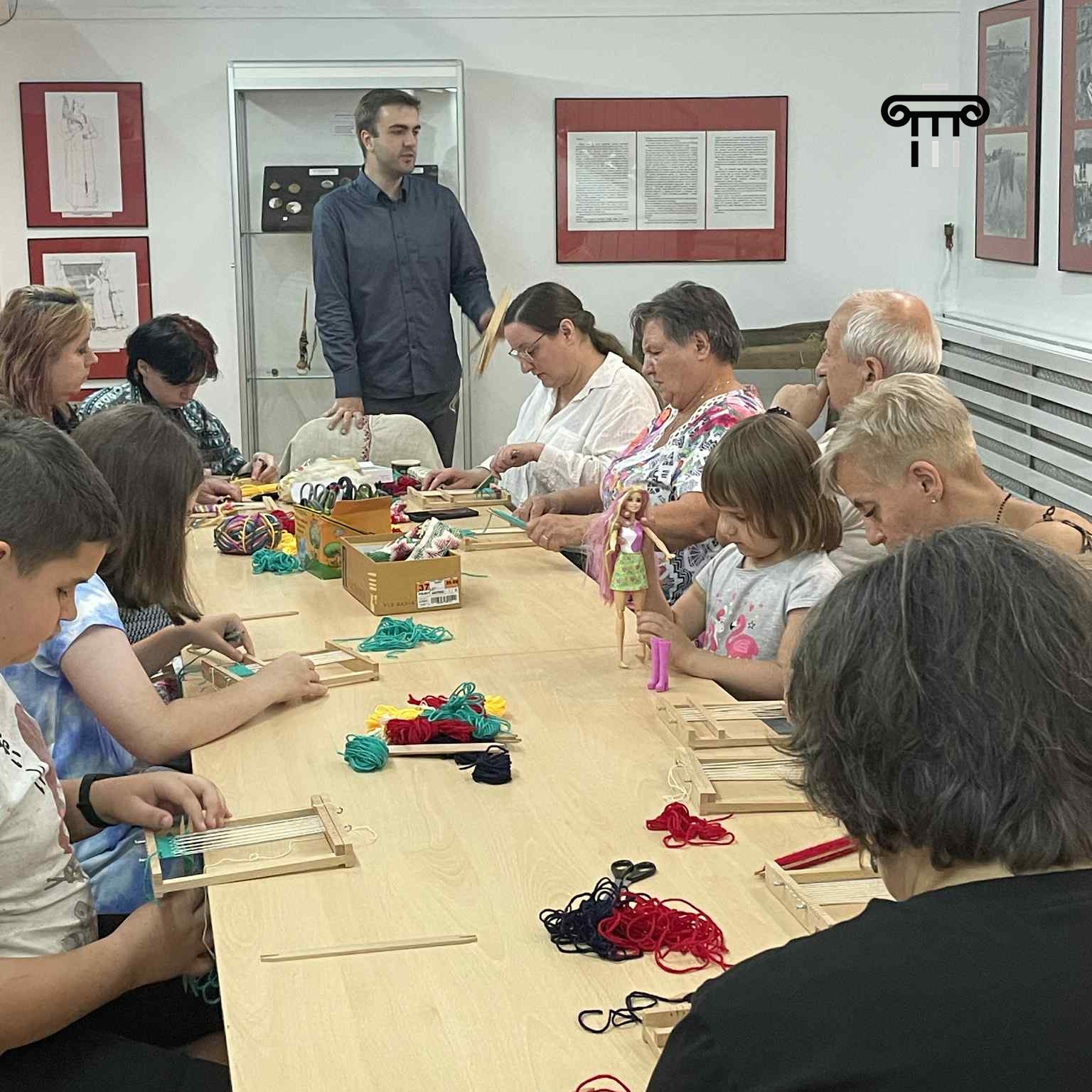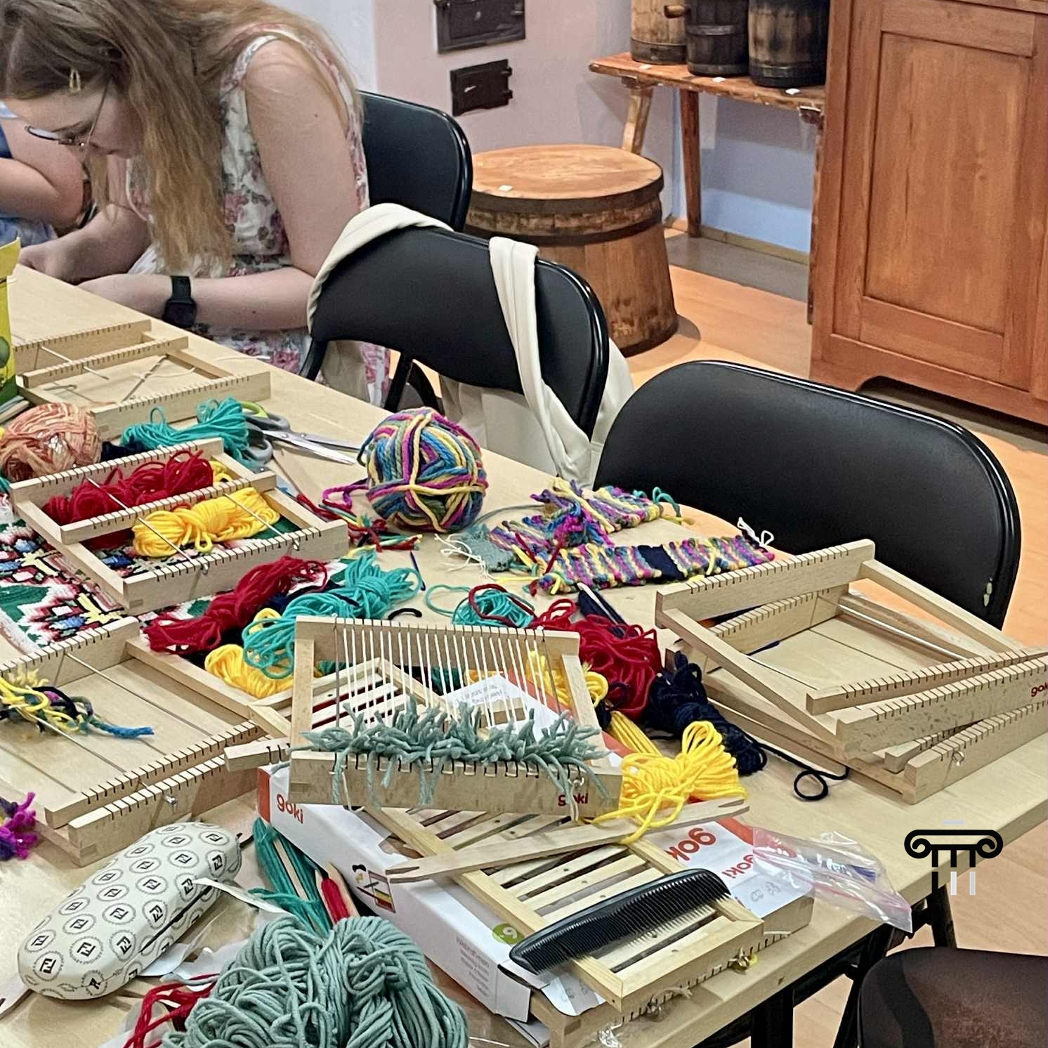 Uczestnicy poznali tradycyjną metodę tkania na krosnach. Dowiedzieli się jak powstawały dawniej tkaniny – od włókna, poprzez nici, aż do samodzielnie tkanych materiałów. W części manualnej zajęć uczestnicy własnoręcznie utkają zakładki na małych krosnach ręcznych.