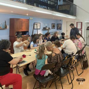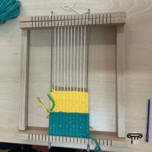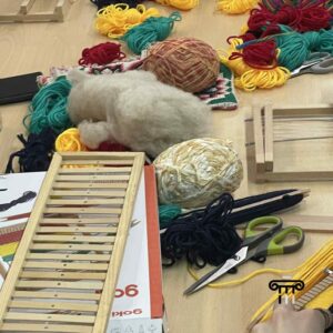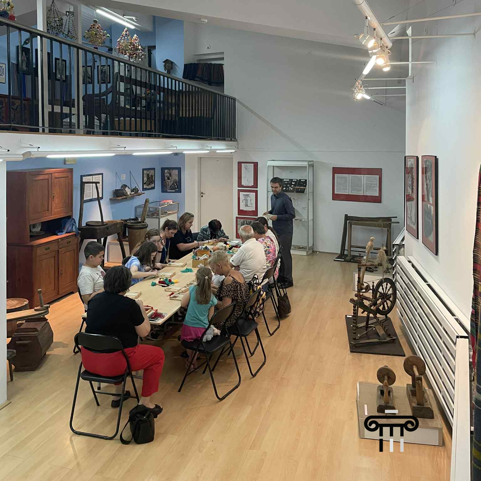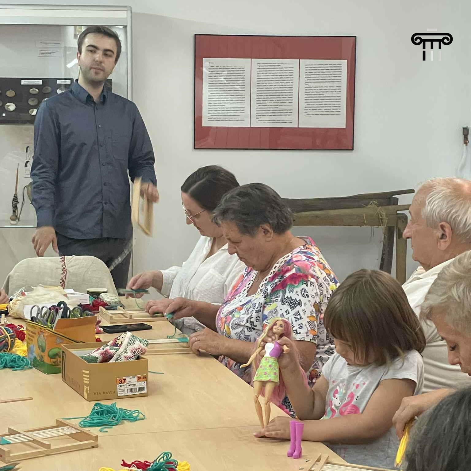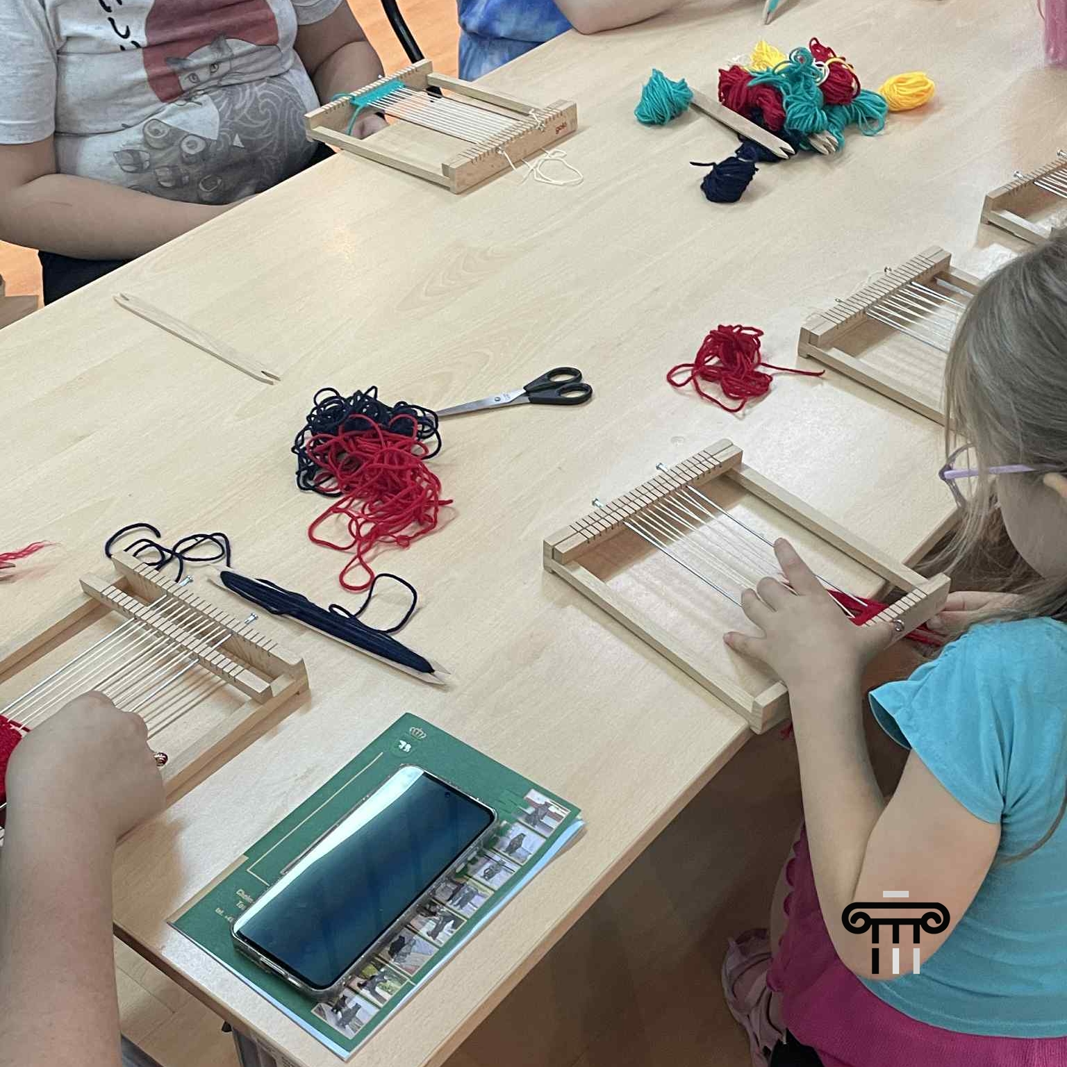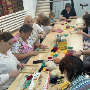 Uczestnicy poznali tradycyjną metodę tkania na krosnach. Dowiedzieli się jak powstawały dawniej tkaniny – od włókna, poprzez nici, aż do samodzielnie tkanych materiałów. W części manualnej zajęć uczestnicy własnoręcznie utkają zakładki na małych krosnach ręcznych.