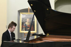 Wernisaż uświetnił mini recital w wykonaniu Seweryna Szarpaka, ucznia Państwowej Szkoły Muzycznej w Chełmie, który swoją muzyką wprowadził gości w wyjątkowy nastrój i pięknie dopełnił artystyczny charakter wieczoru.